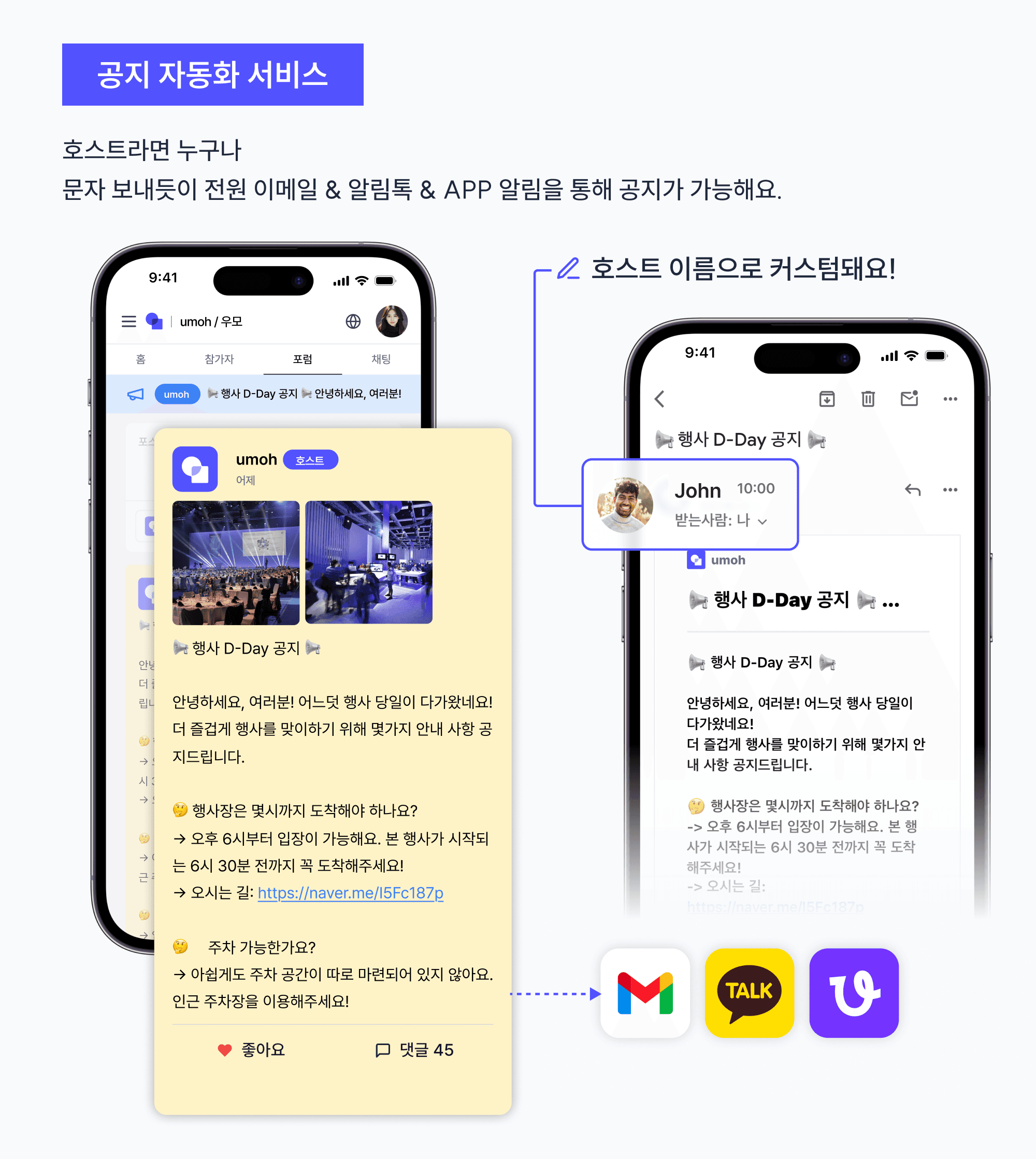 이번 글에서는 실제 우모를 활용한 수십 건의 행사 경험을 바탕으로,행사 전/후 참가자 만족도를 ‘진짜’ 높였던 메시지 사례를이메일 & 문자 형식으로 모두 공개합니다.