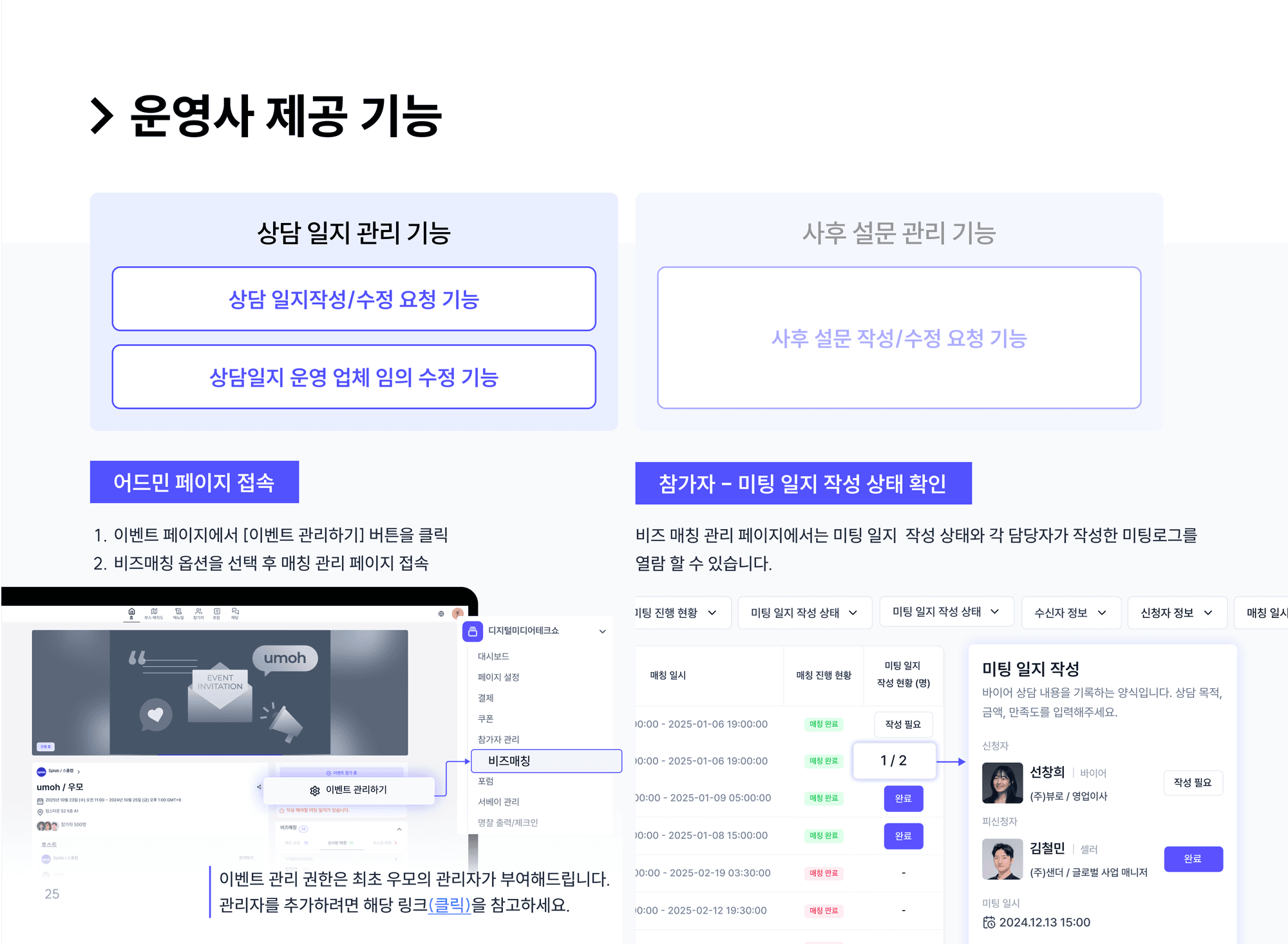 우모 비즈매칭 - 상담일지 작성 기능