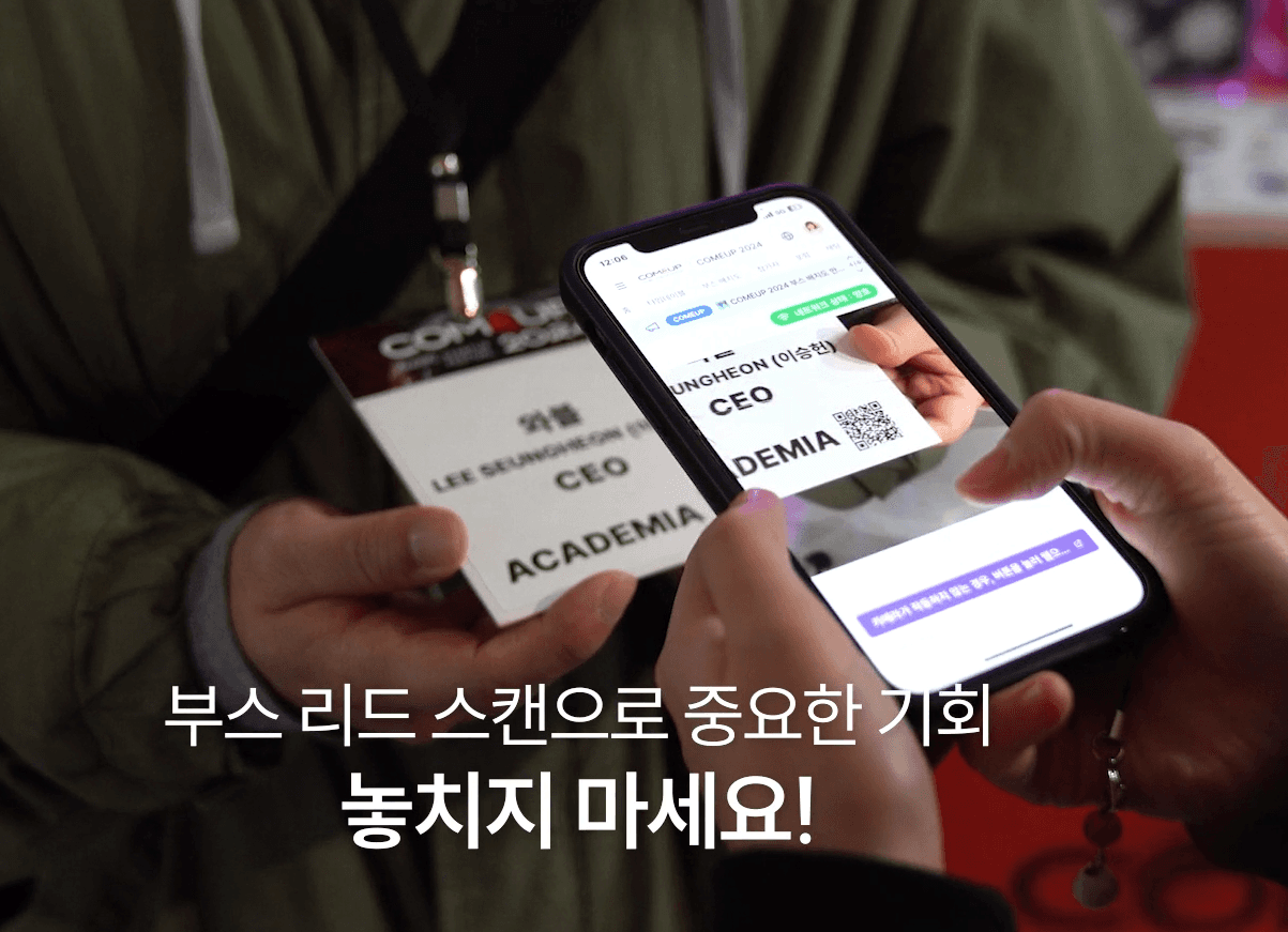 • 명찰 기반 리드 수집, QR 태깅, 상담일지 디지털화