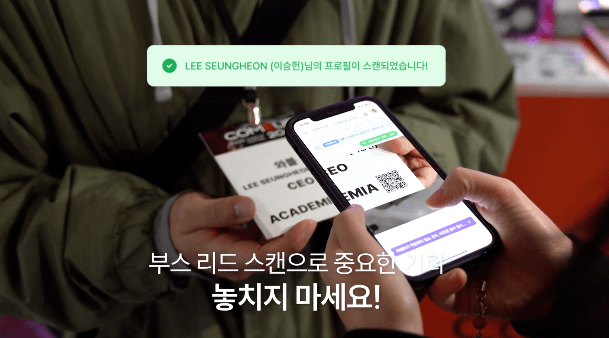 • 배경: 100개 이상의 기업이 참여하는 대규모 B2B 행사에서 각 부스가 방문객을 효율적으로 관리할 수 있는 솔루션이 필요함