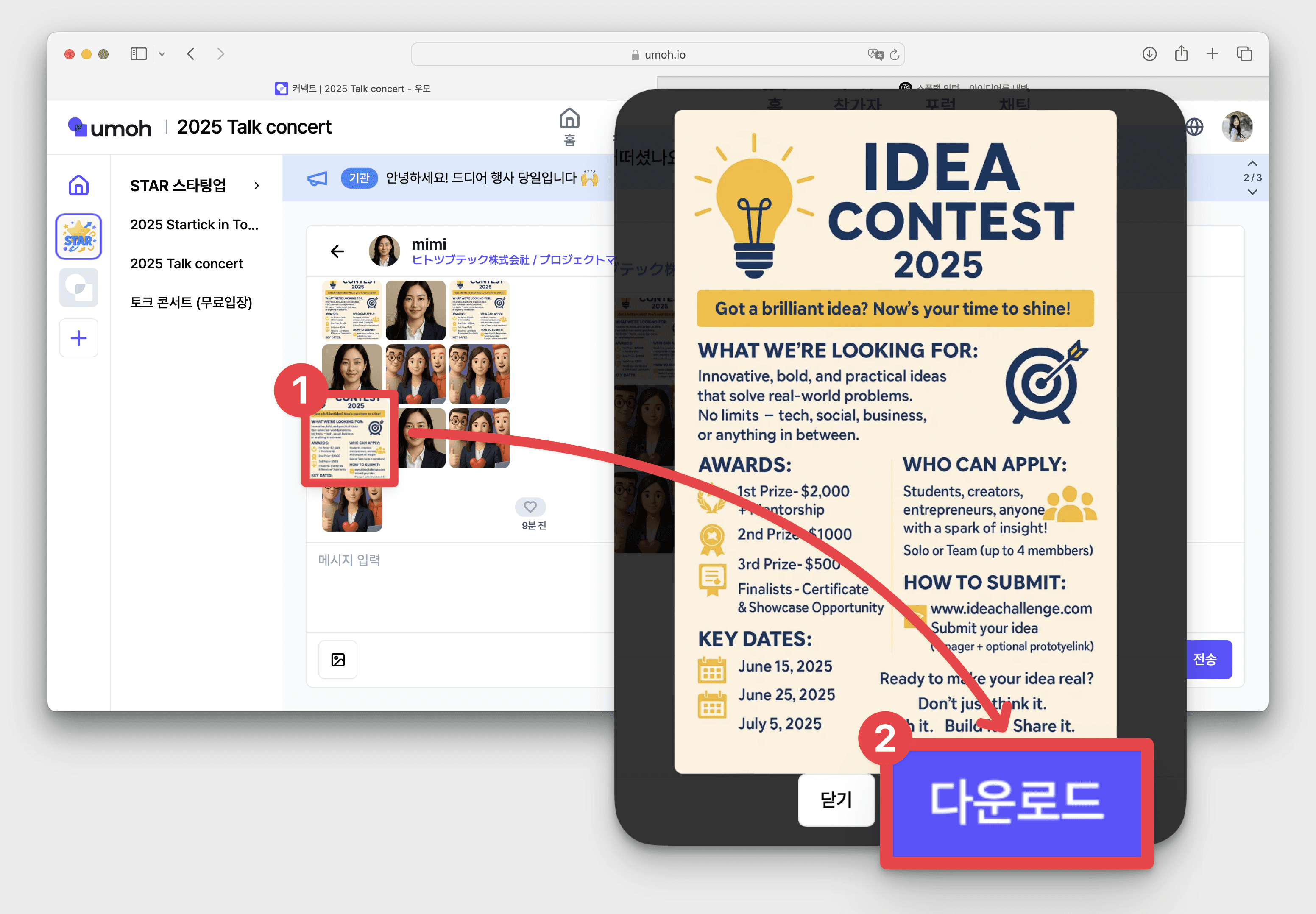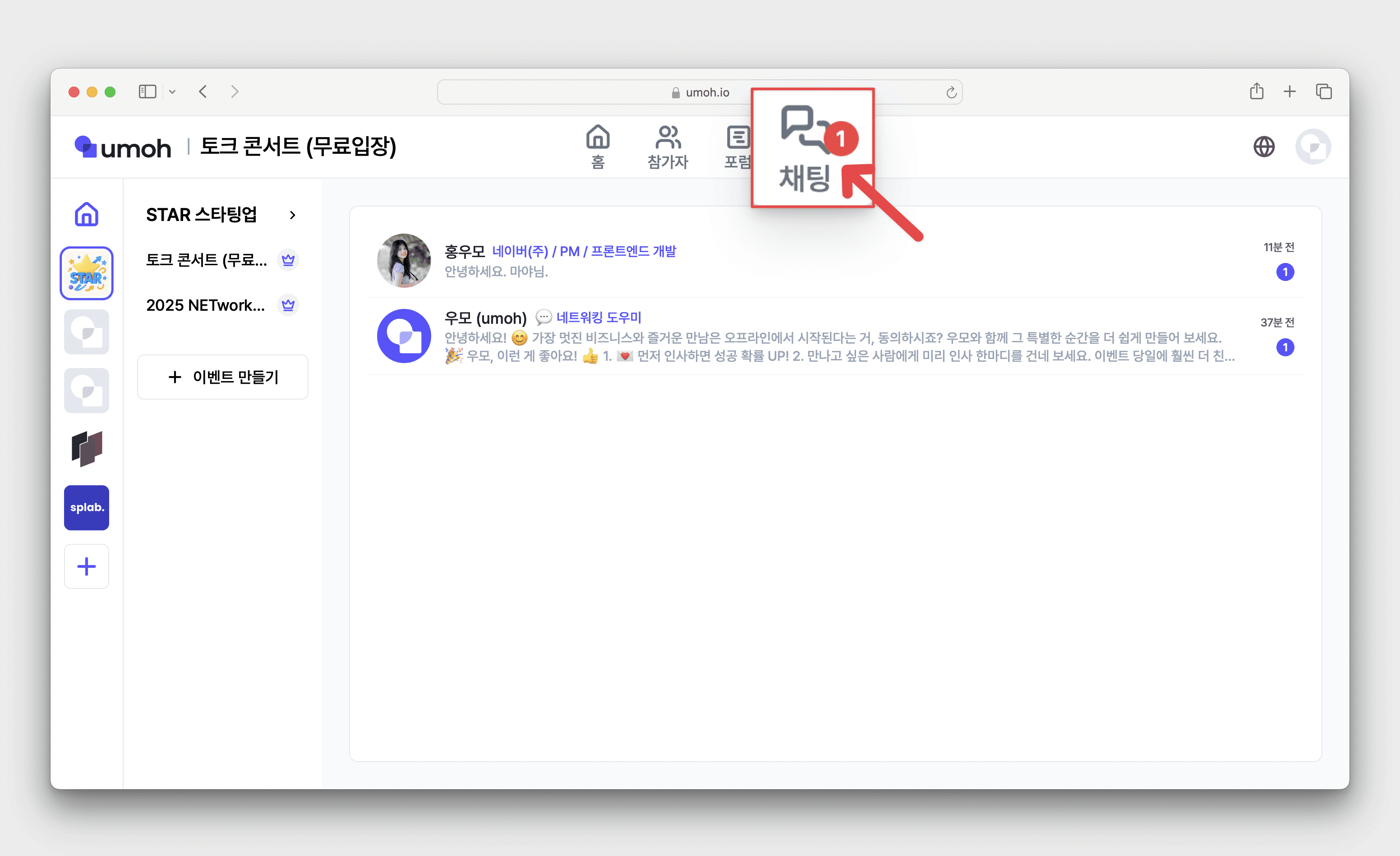 원하는 참가자와 채팅을 시작해 볼까요?