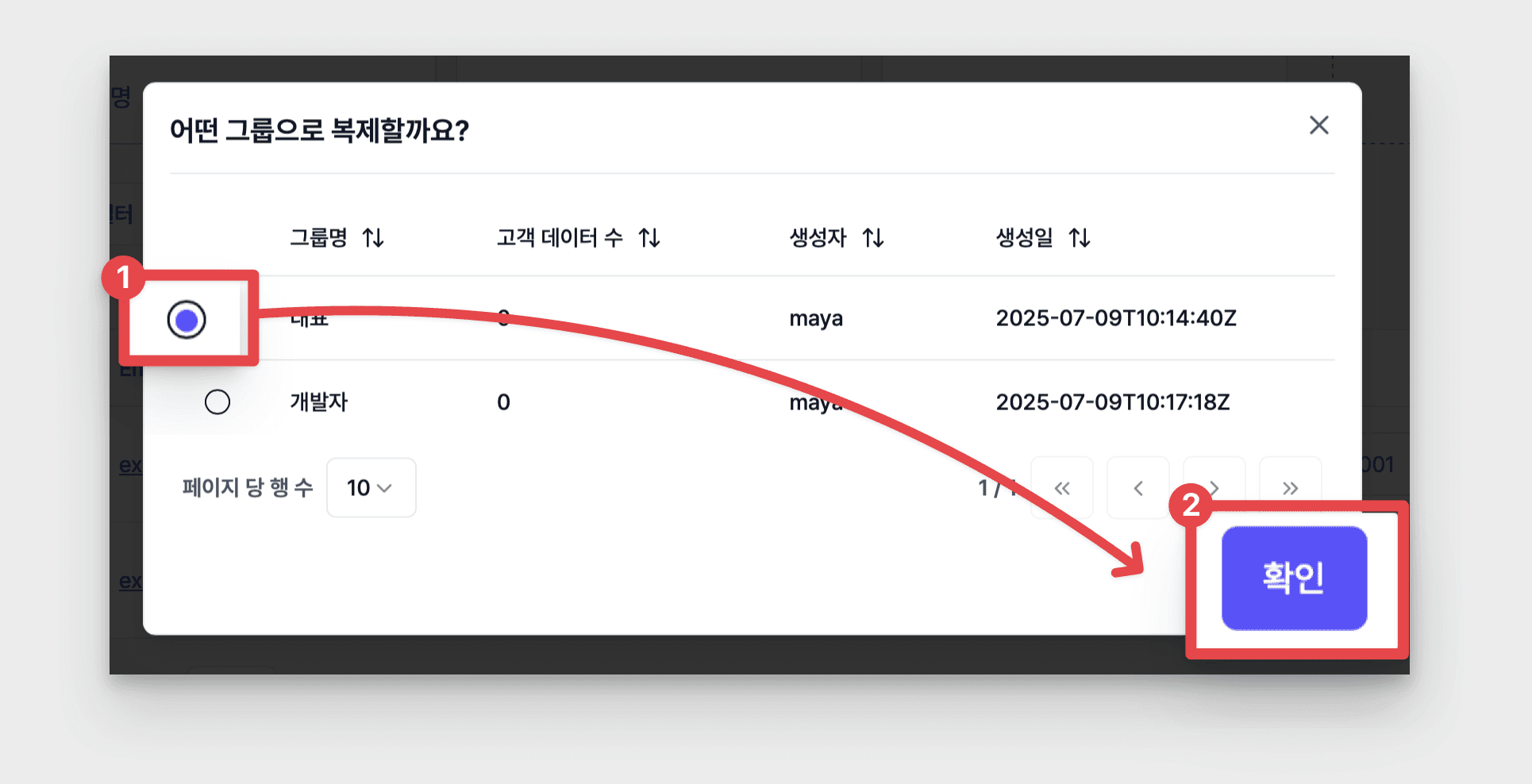 • 원하는 [그룹] 선택 → [확인] 클릭