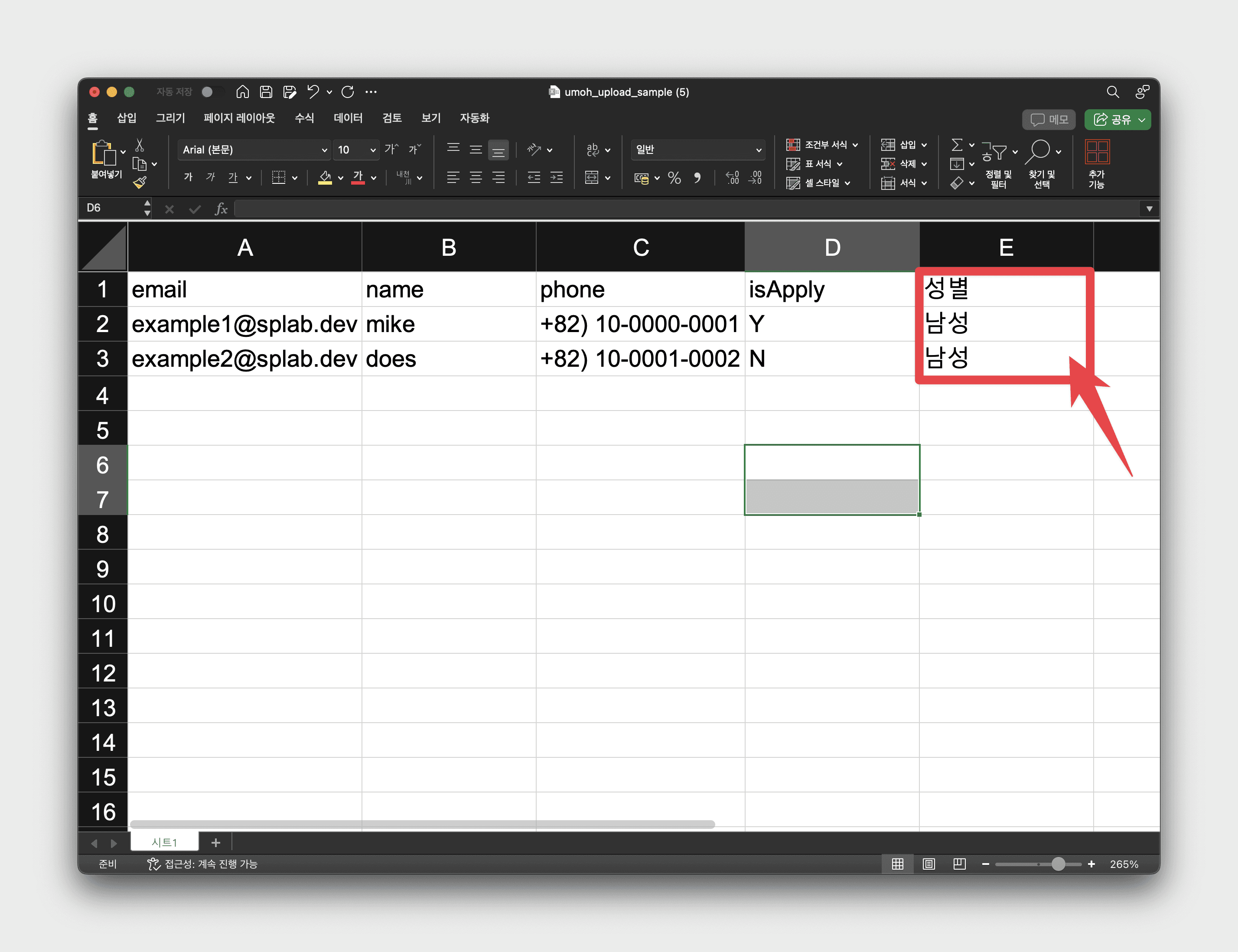 • 엑셀 파일 첫행 마지막 칸에 원하는 [속성] 추가 → 데이터 기입