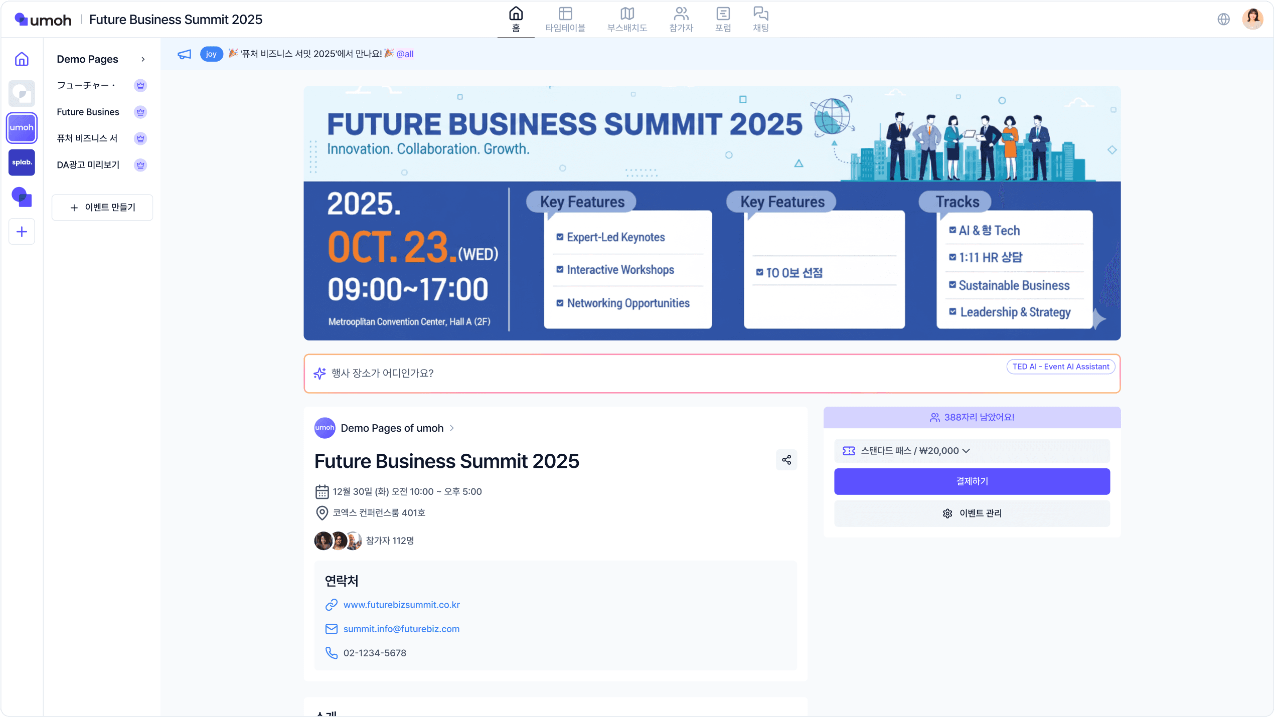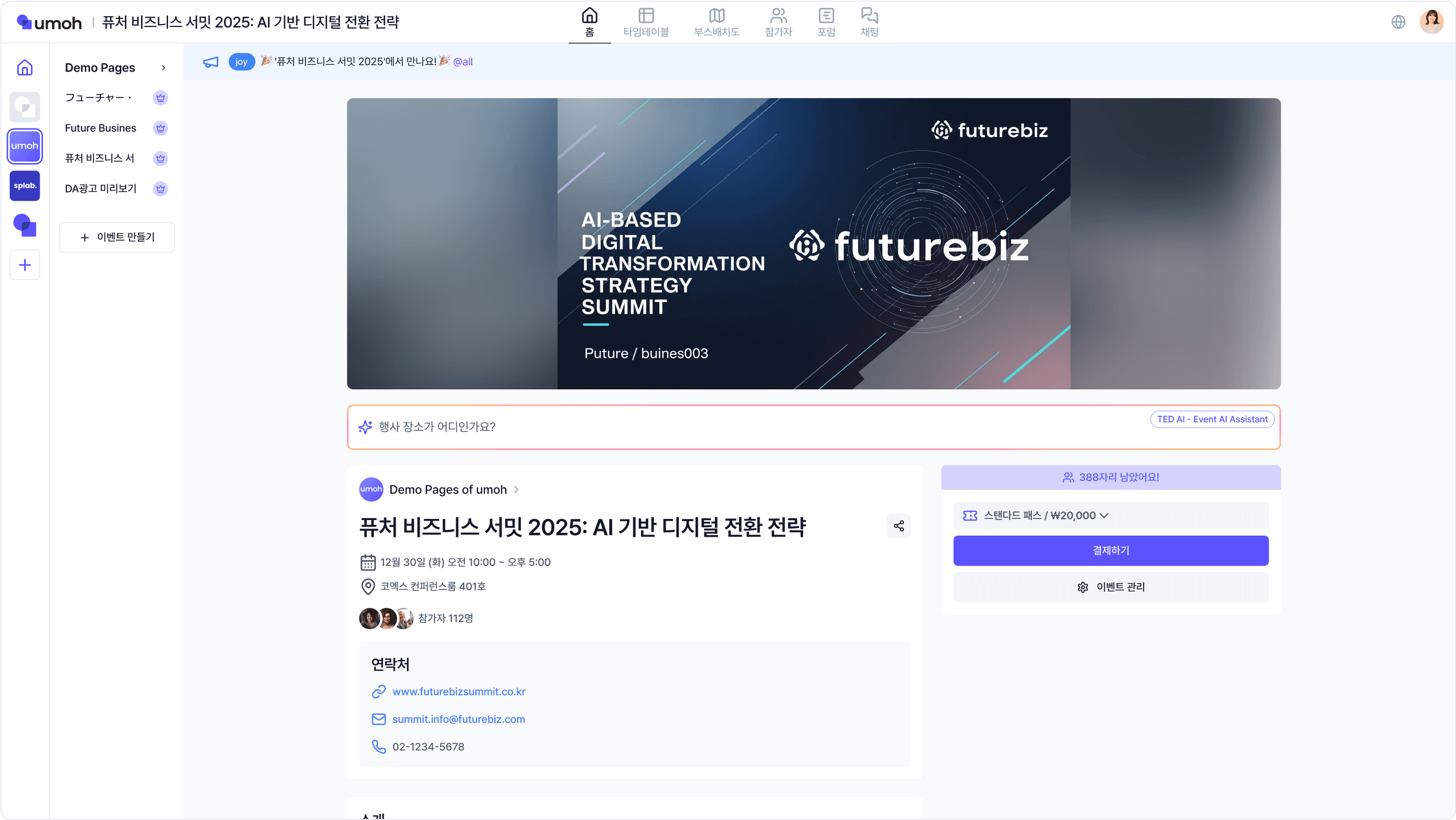 우모 페이지에 진입 시 띄워지는 배너예요. 아래와 같이 광고 및 홍보 목적으로 많이 사용돼요.