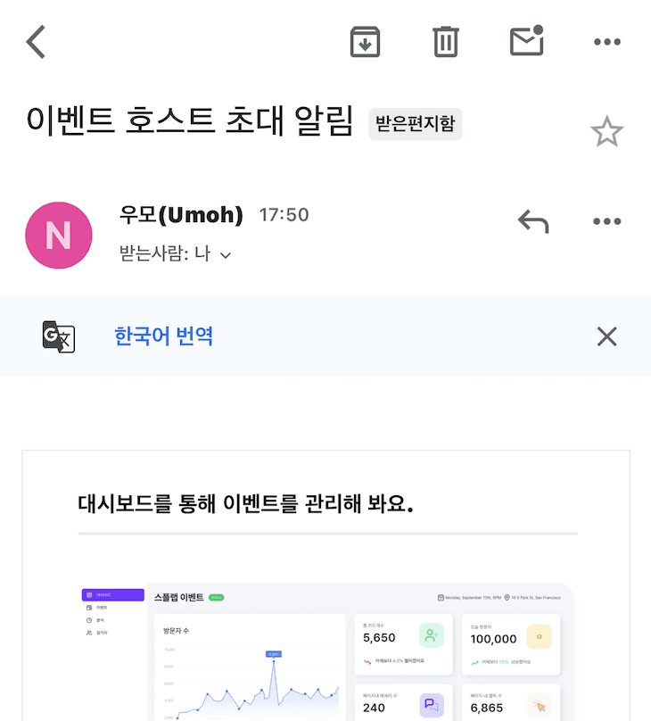 8. [중요] 초대된 호스트는 '메일 인증'을 해줘야해요! 인증 전이면 'draft' 상태로 떠있습니다.
