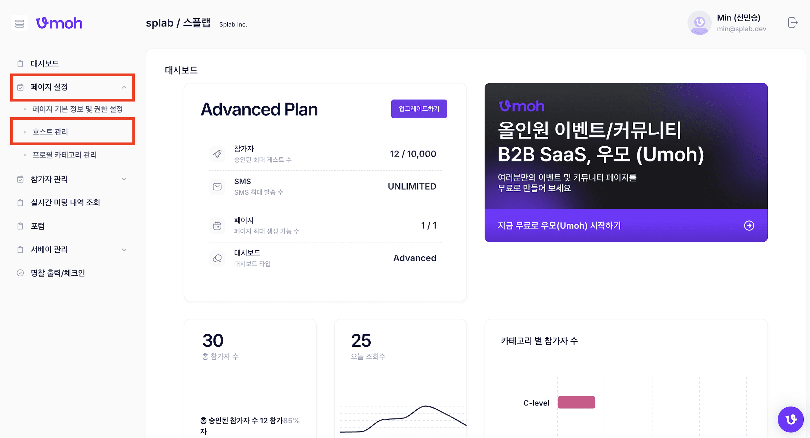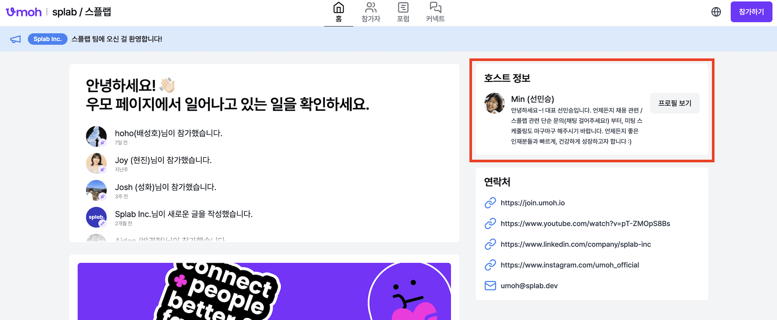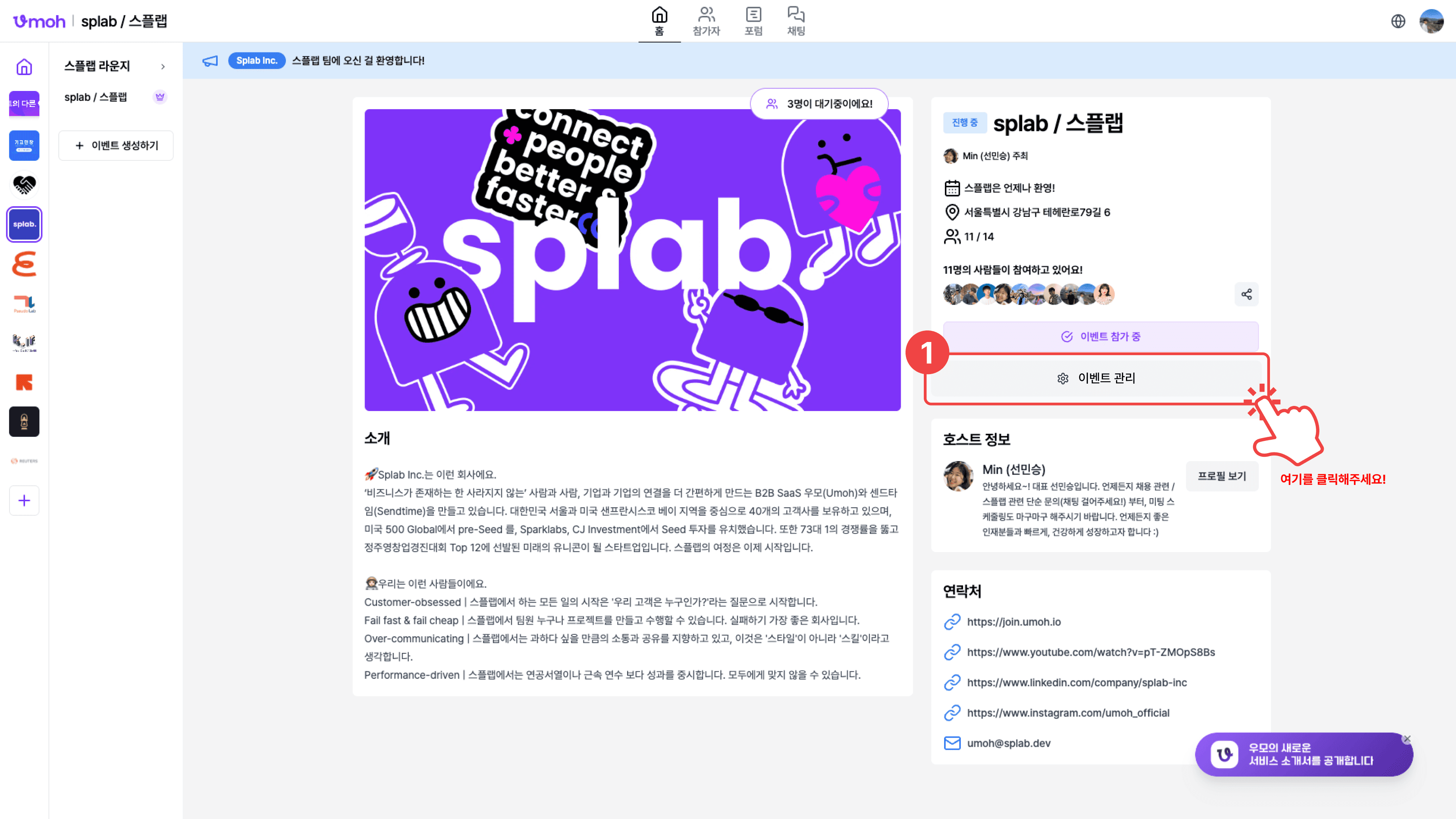 10. 위의 보라색 버튼을 누르면 이렇게 호스트 모달이 떠있는 이벤트 페이지에 오게 됩니다.