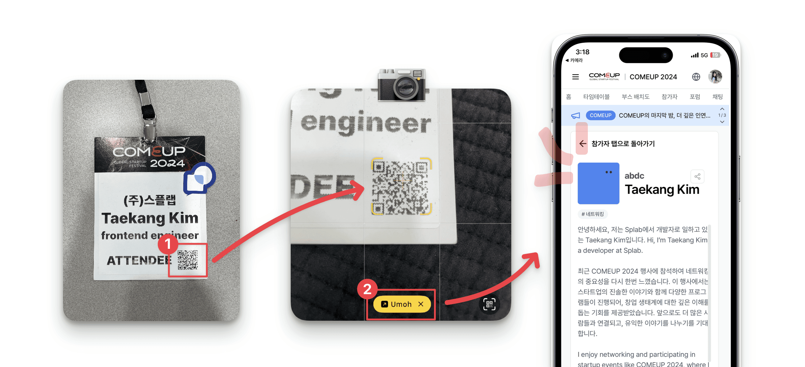 상대방의 QR코드를 찍어 프로필 카드를 손쉽게 확인해요!