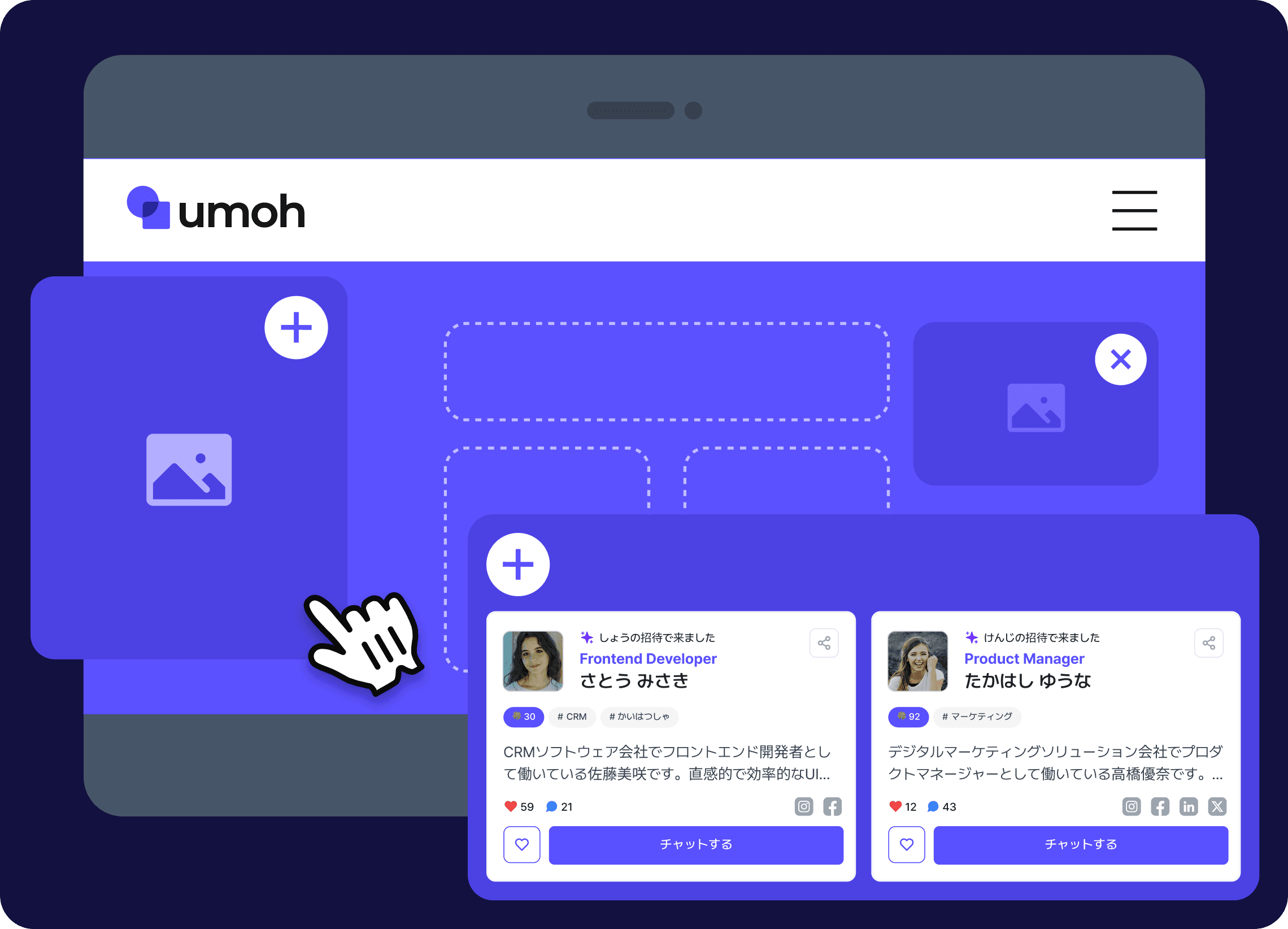 ウモーはチェックイン、AIビジネスマッチング、レポートまで