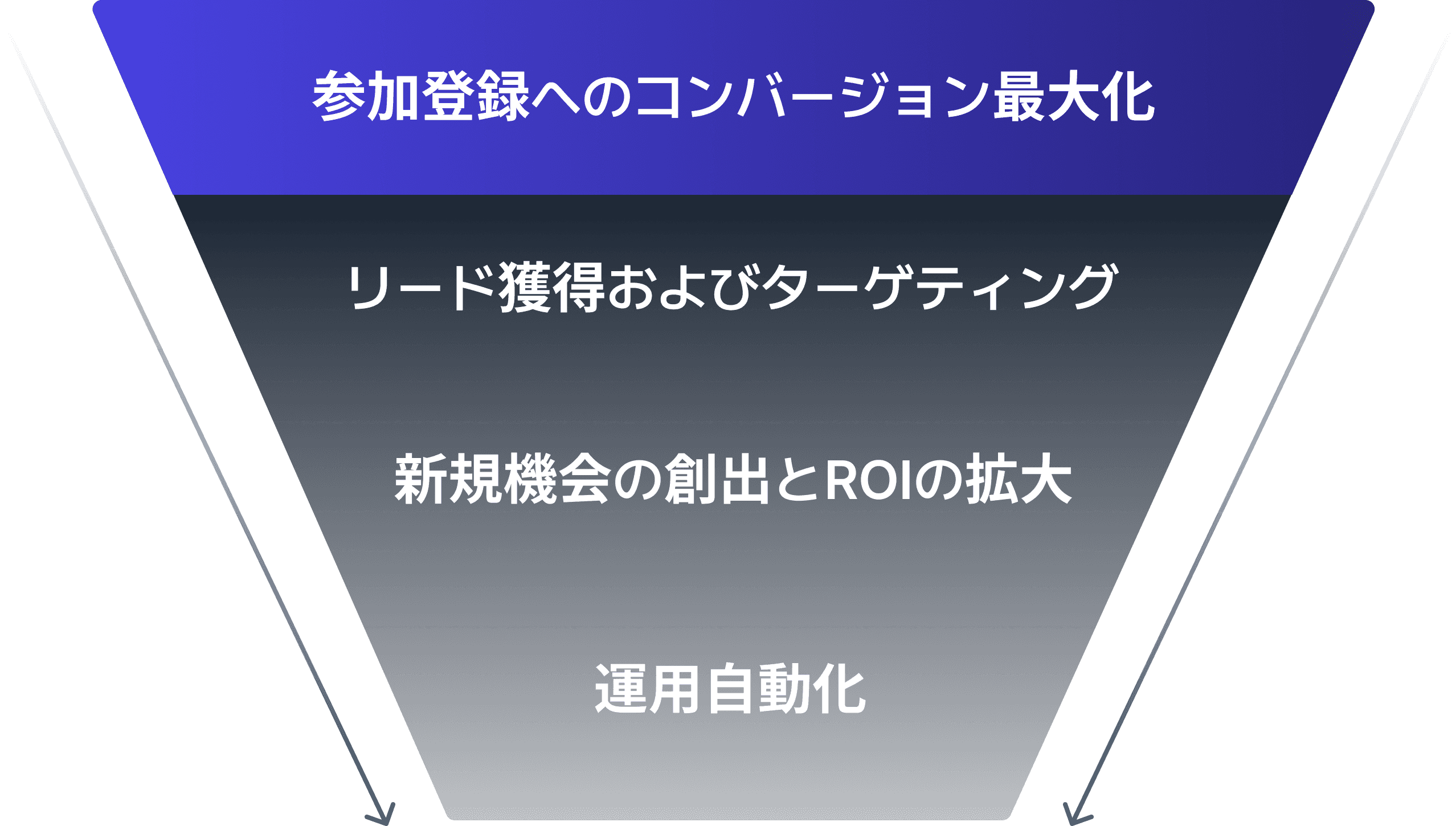 参加者が有意義なマーケティングまたはセールスリードかどうかの資格確認が必要であり、 次回イベントへの招待可否を判断するためのアドレス帳およびコンテキスト管理が必要です。