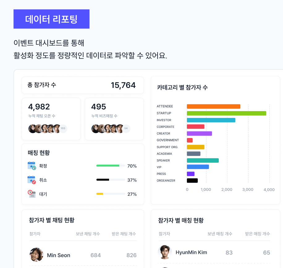 비즈니스 매칭 시스템 도입 – 참가자 간 네트워킹 기회를 극대화하세요.