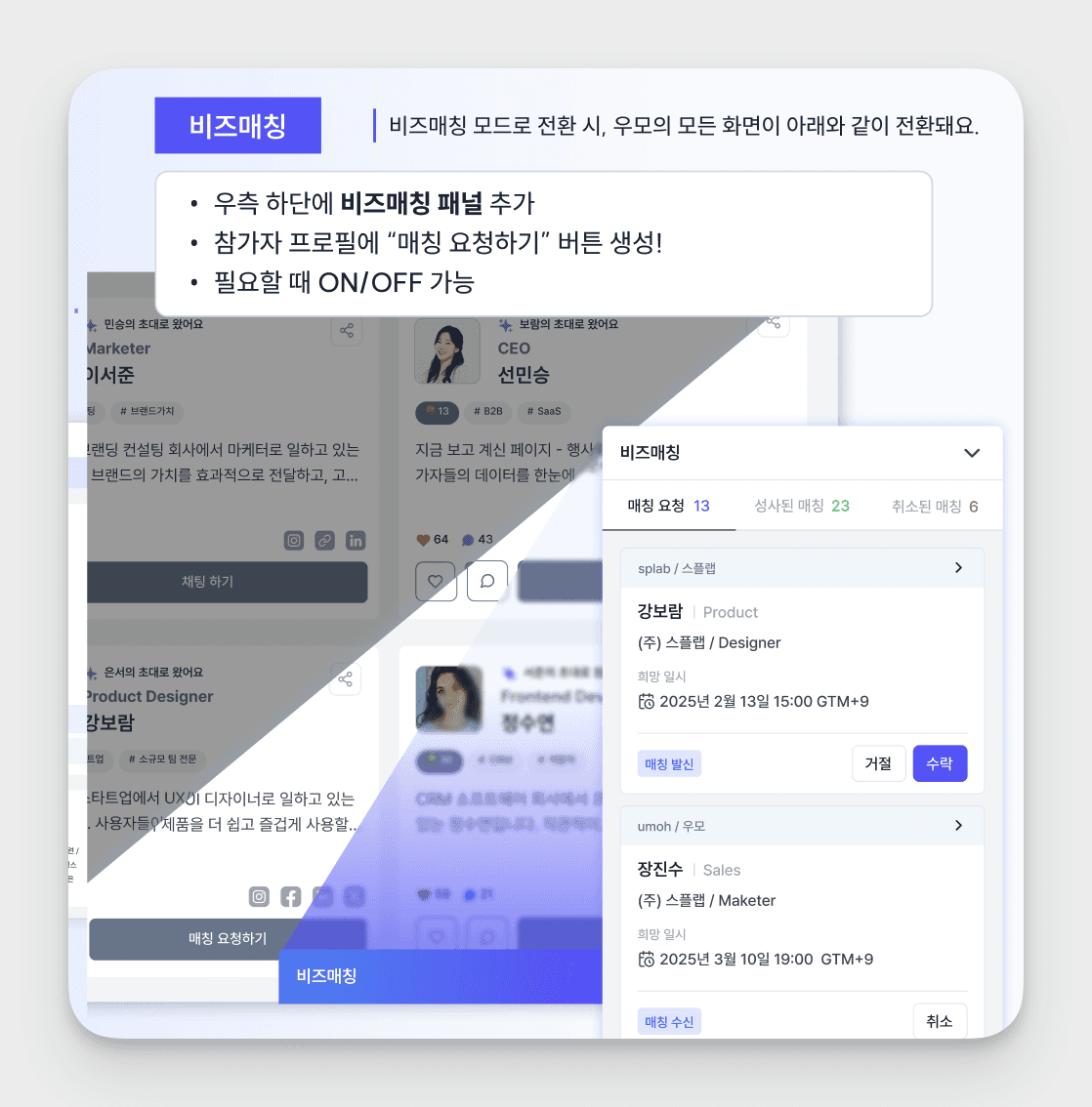 참가자들이 비즈매칭을 원활하게 활용할 수 있도록,
