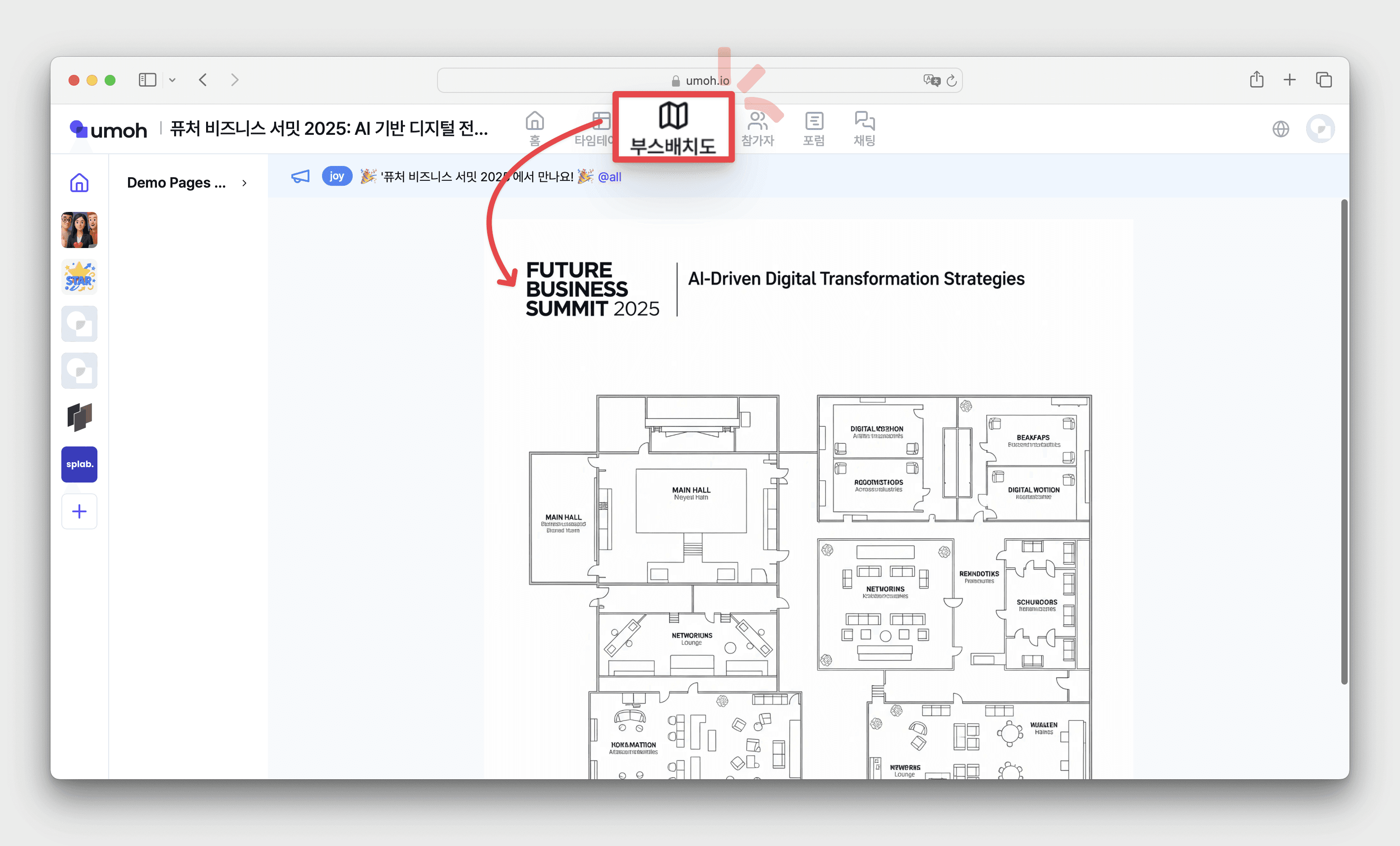 💡 커스텀 탭은 타임 테이블부터 부스 배치도, 연사 소개까지 다양하게 활용할 수 있습니다.