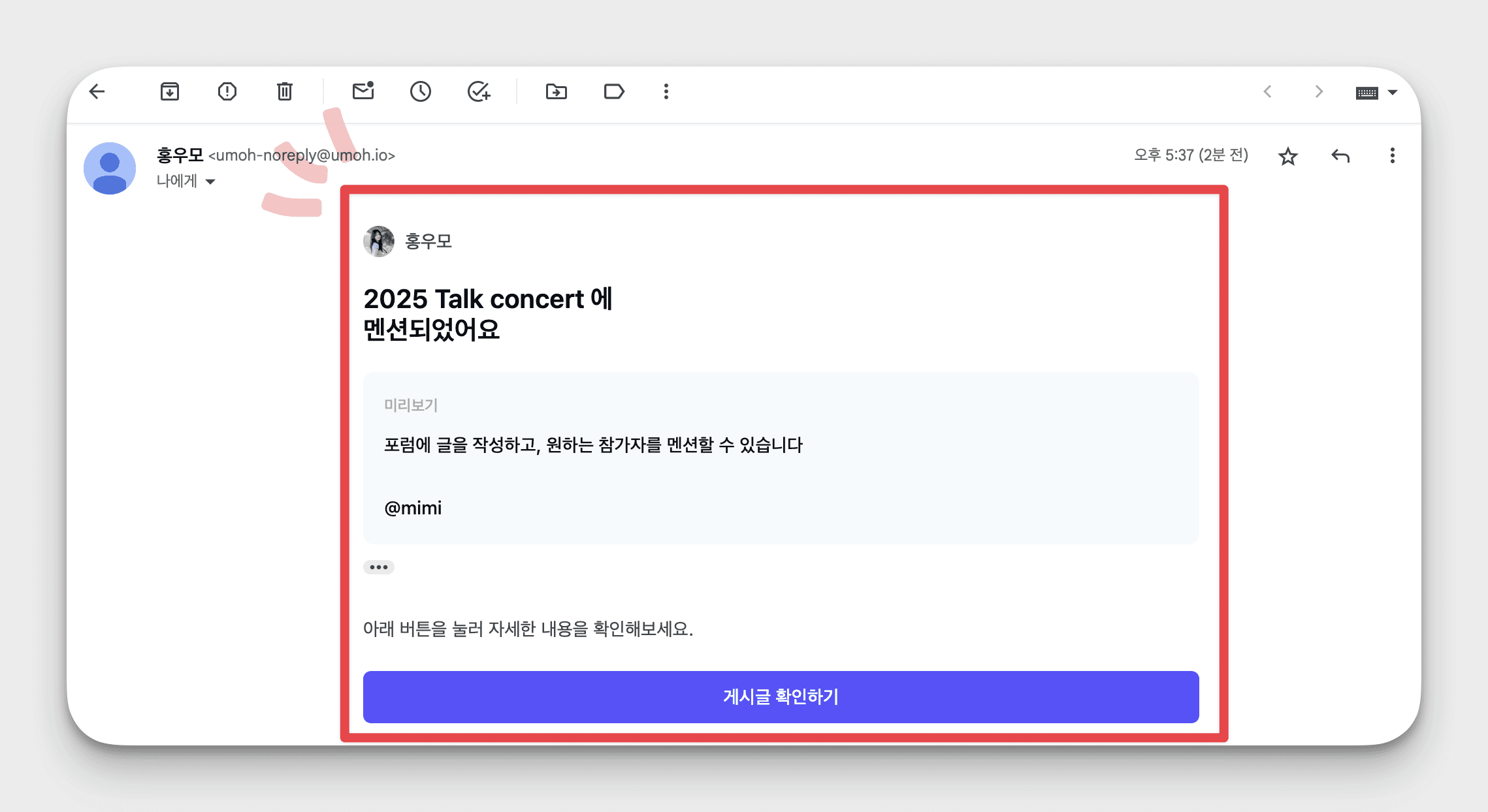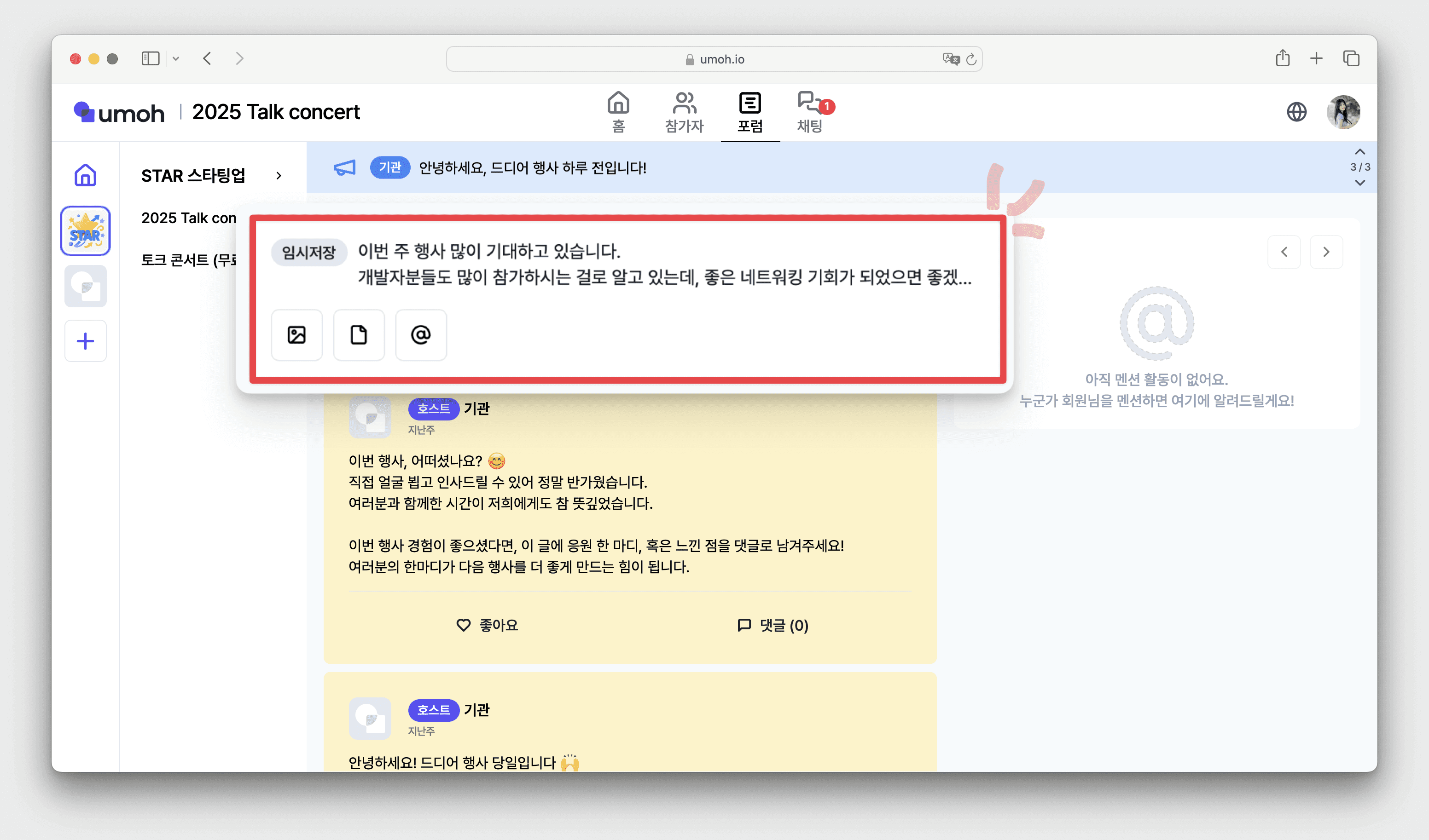 포럼 글, 댓글에서 나를 멘션하면, 멘션 목록에서 모아서 확인할 수 있어요!