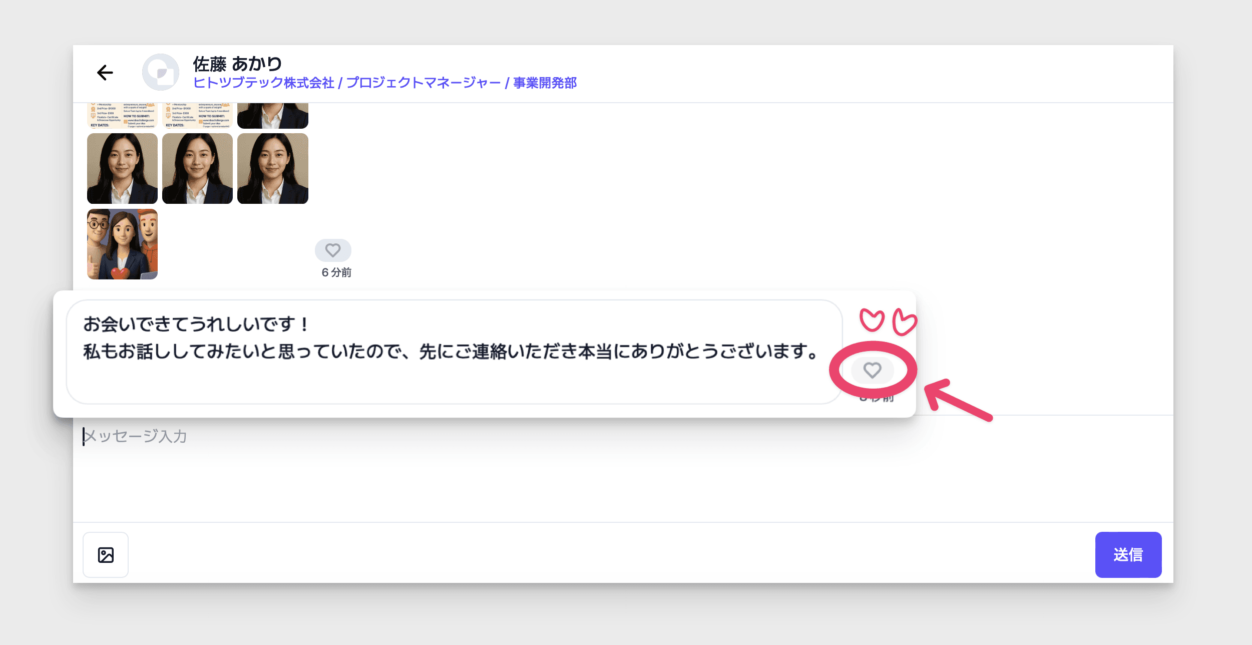 チャットボックスの横にある[ ♡ ]をクリック