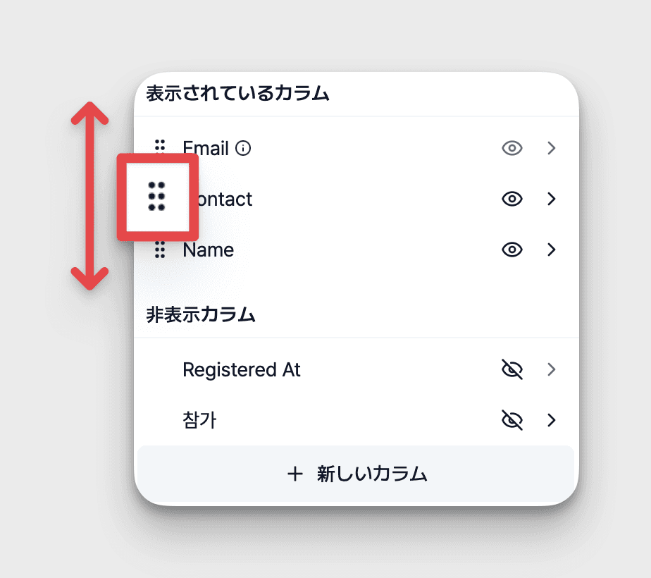 • 順序を移動させたい属性項目の[...]ボタンを押しながらドラッグ → 項目の移動が可能