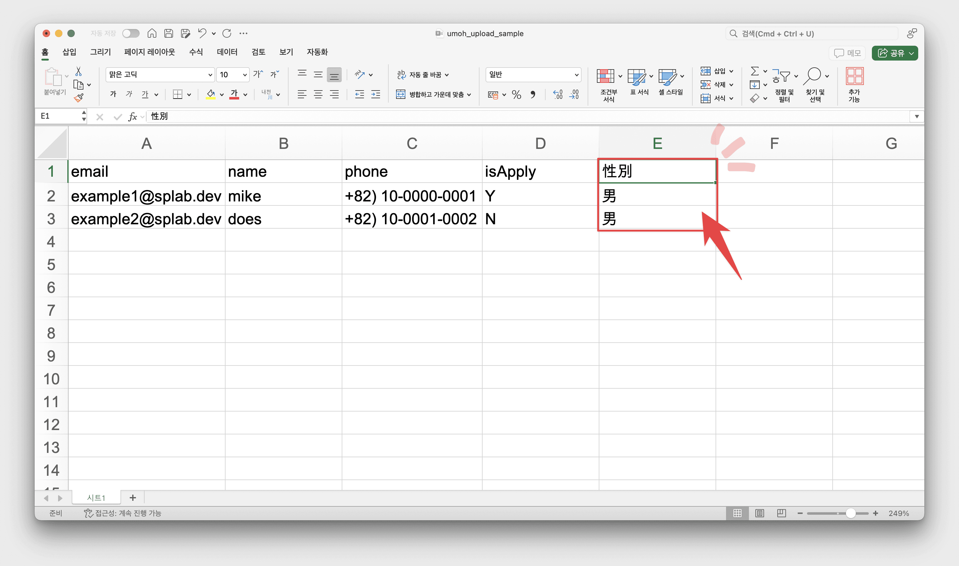 • エクセルファイルの最初の行の最後のセルに希望する[属性]を追加 → データ入力