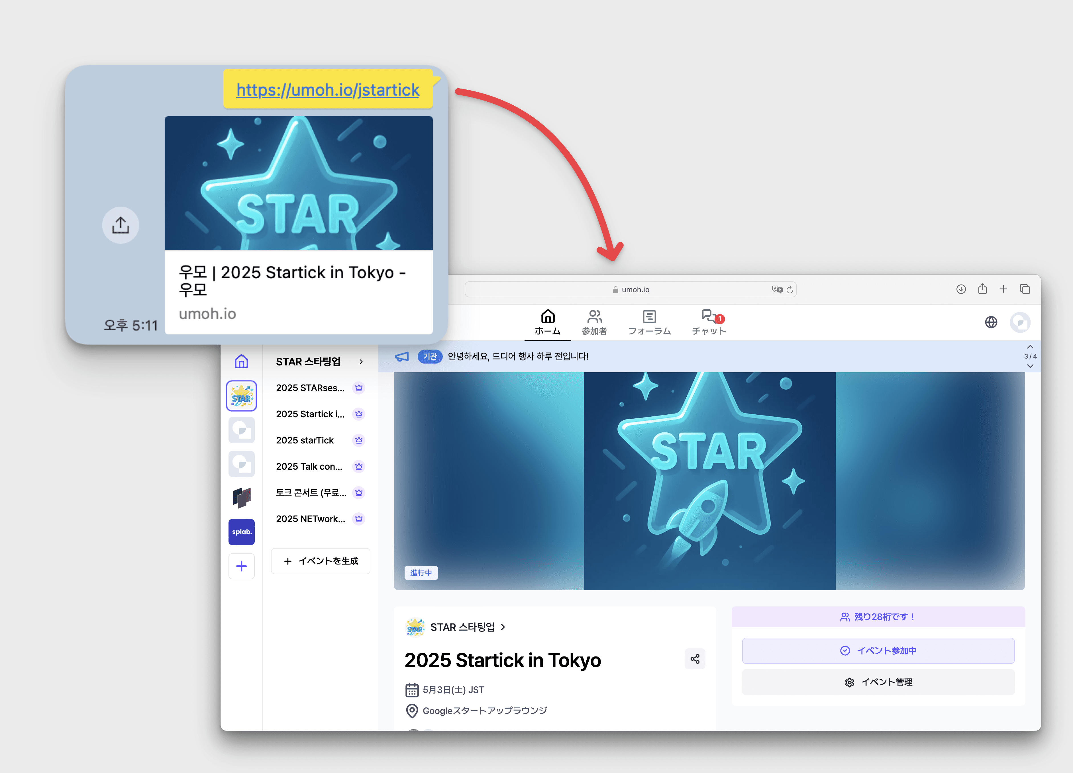 イベントリンクでアクセス