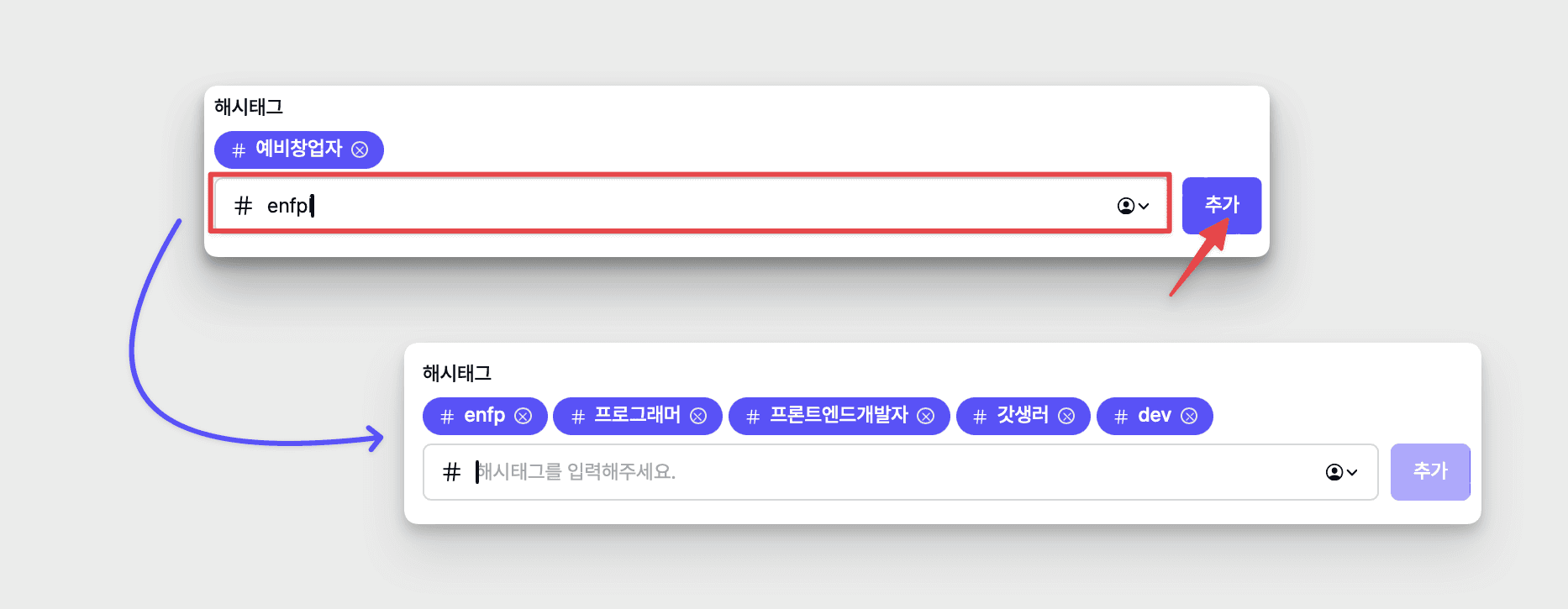 [해시태그] 입력 → [추가] 버튼 클릭