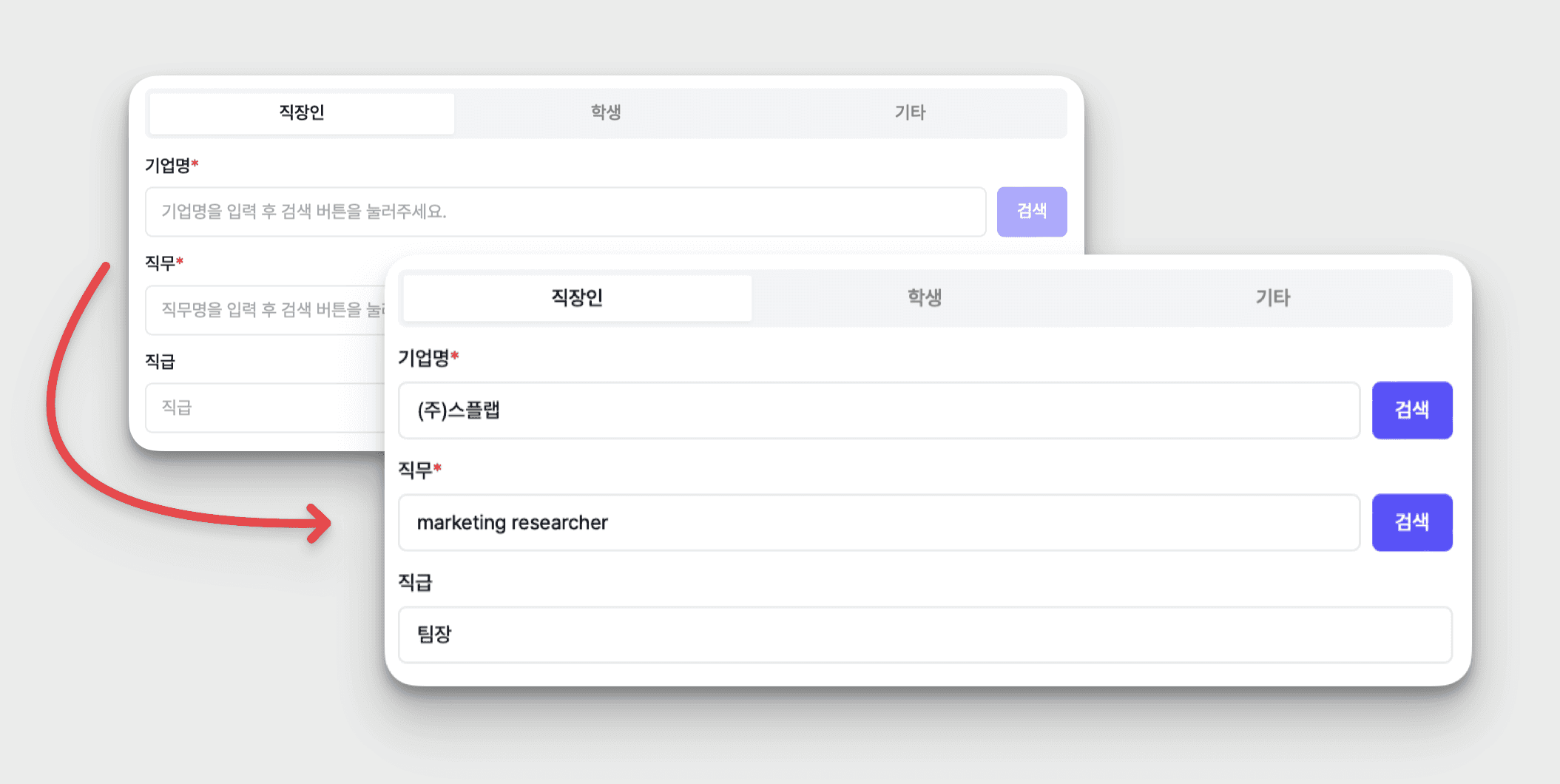 재직정보 [기업명], [직무], [직급] 입력